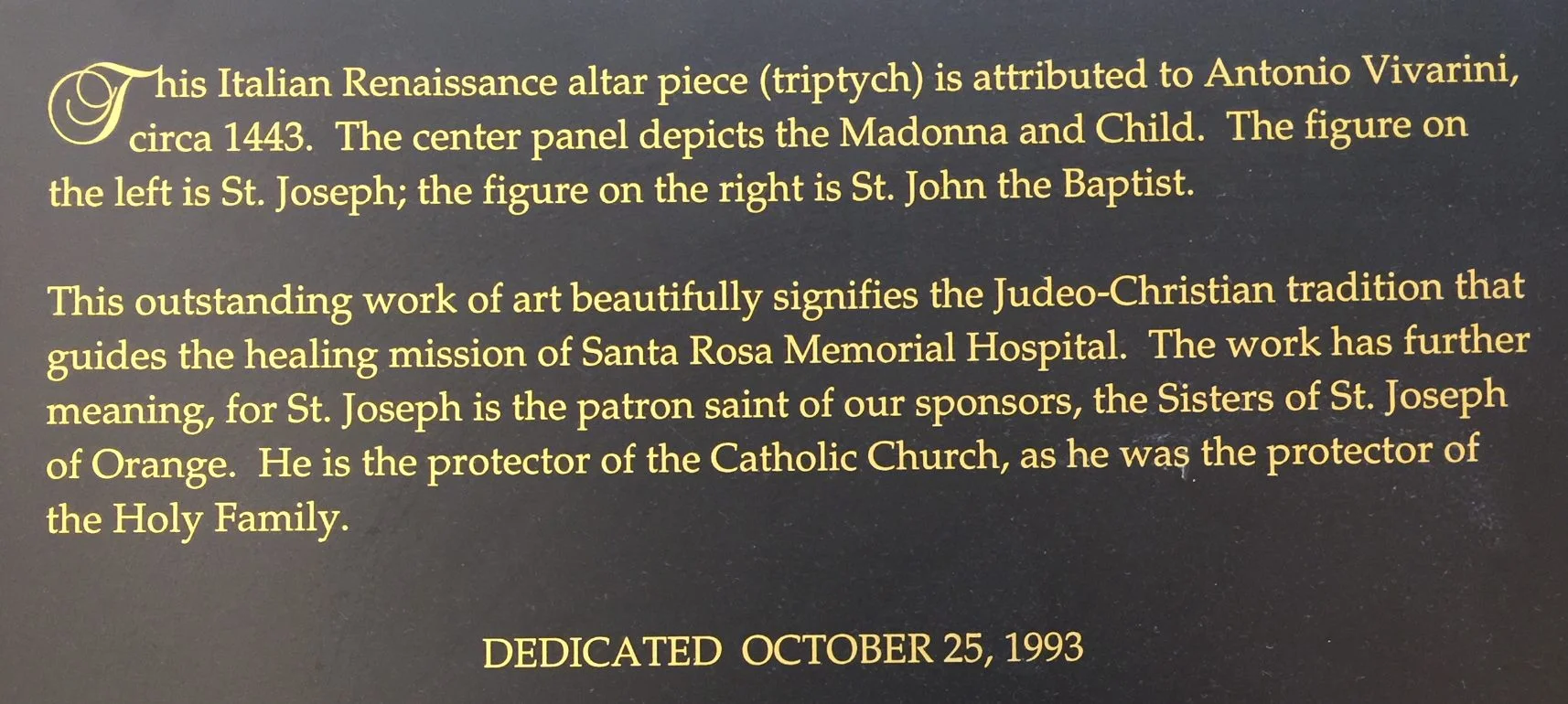 In the lobby of our hospital is a 15th Century triptych with life sized figures,